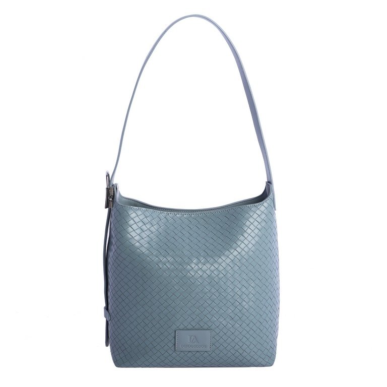 Bolso de hombro trenzado en color azul cielo.