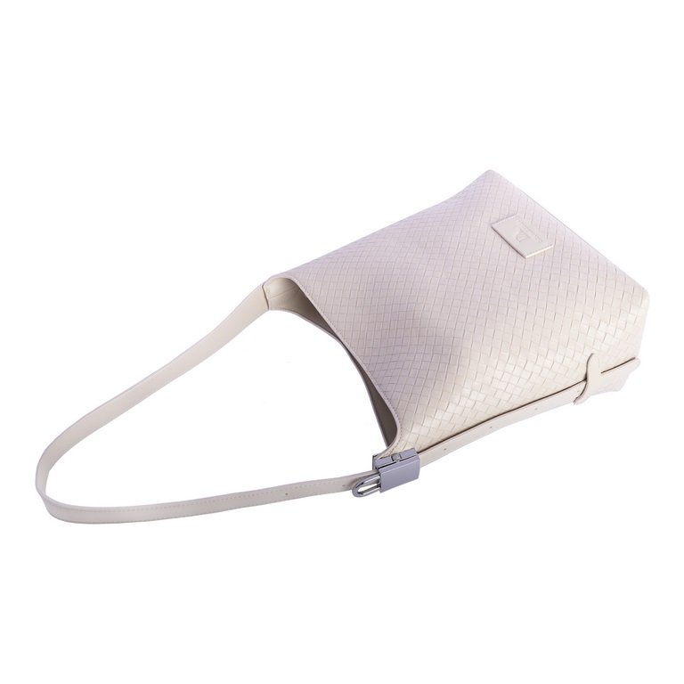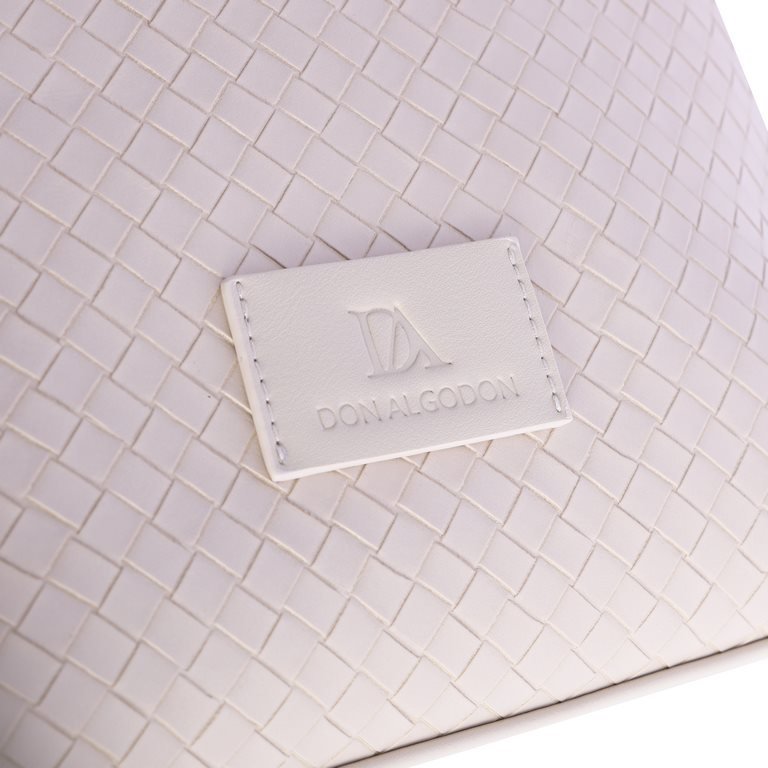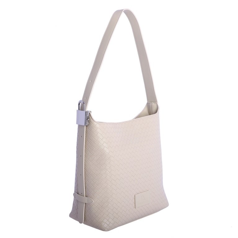 Bolso de hombro trenzado color marfil.