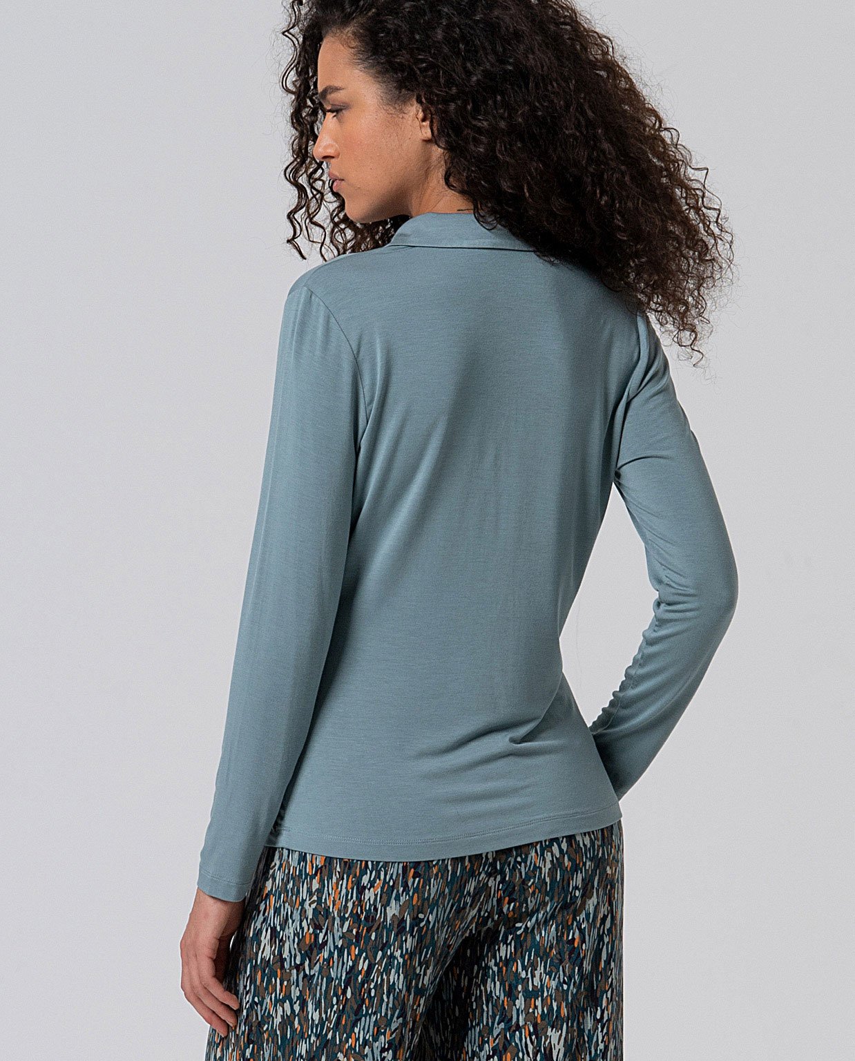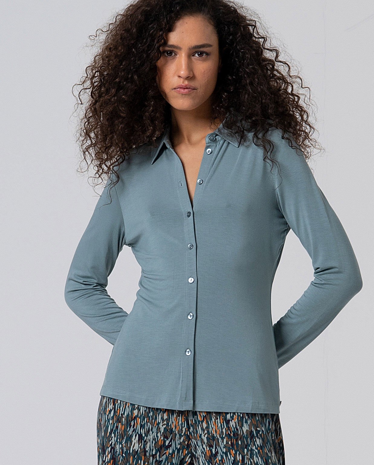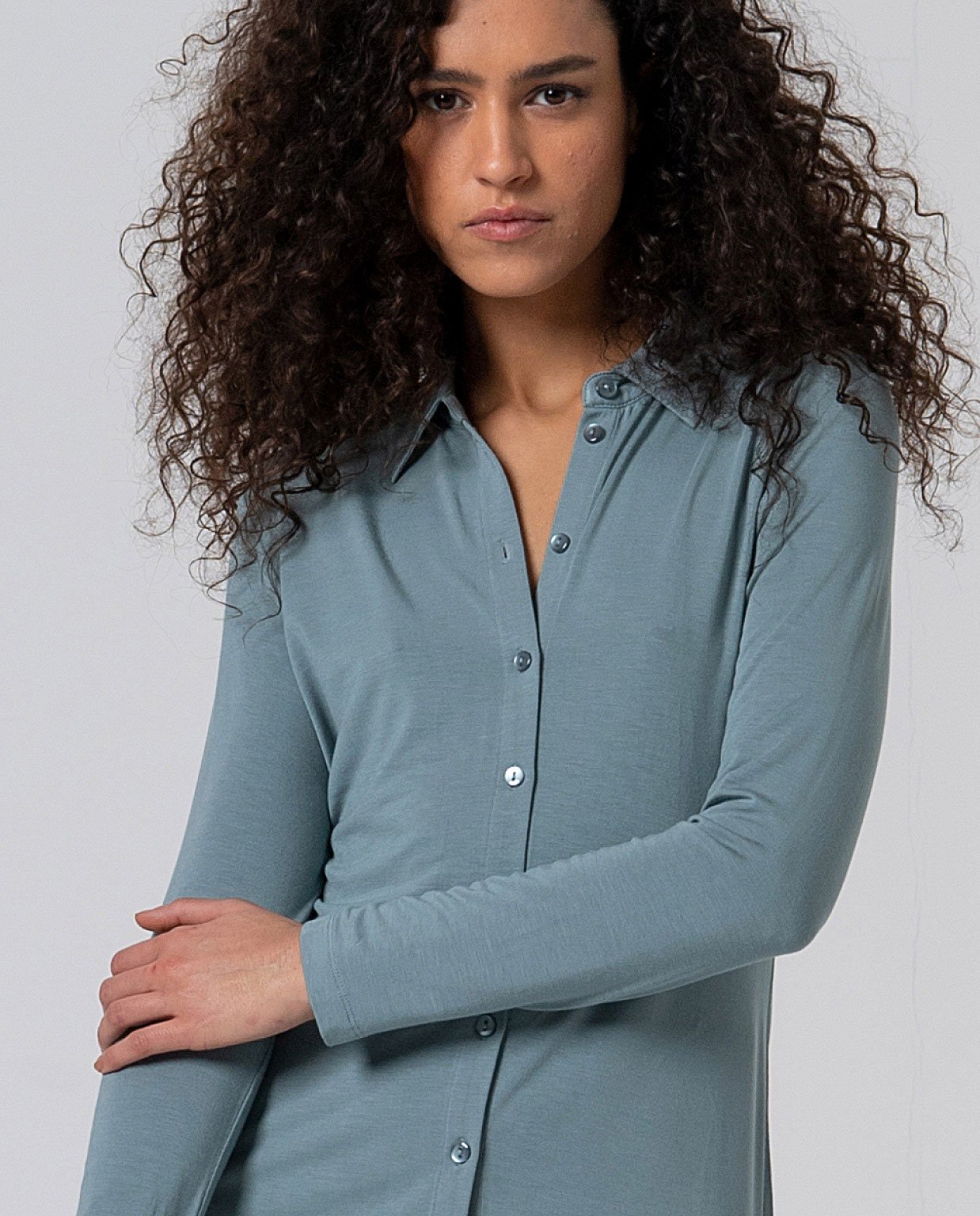 Camisa manga larga con botones.Color azul.Elástica y muy suave.